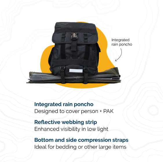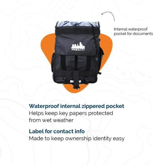 Thanks to our friends at CITYPAK, we offer our clients a secure, durable, waterproof backpack upon their release. CITYPAKs are custom designed with the needs of the unhoused in mind – they are large and made from a durable ballistic nylon that allows them to withstand the elements. They also feature anti-theft webbing loops, multiple compartments, and an integrated rain poncho.